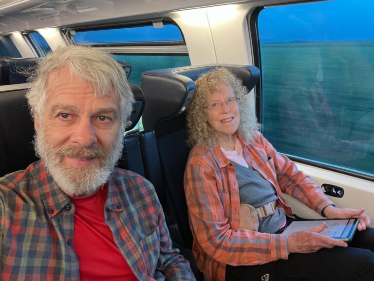 Thank goodness our Eurail passes are first class and we have seat reservations. The luggage bins were overflowing but we were able to get our bags stuffed in and get to our seats.