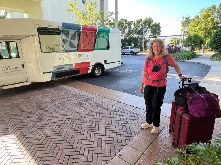 Ready to get on the airport shuttle.