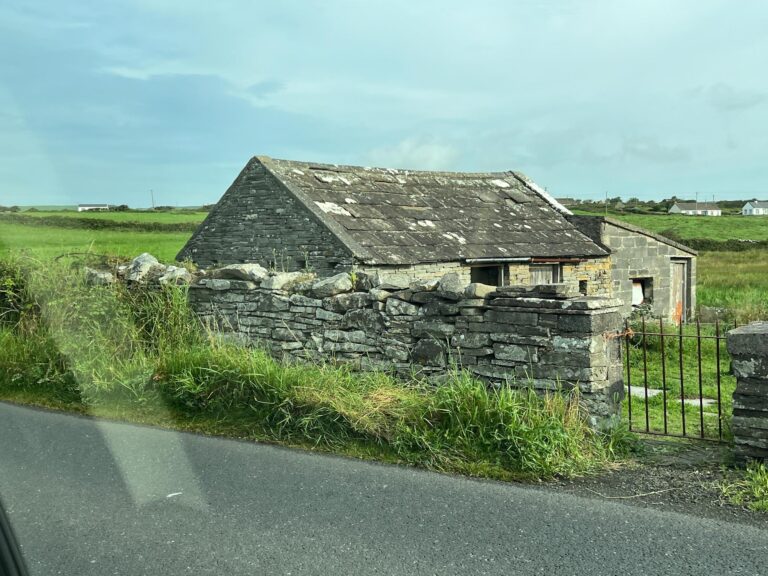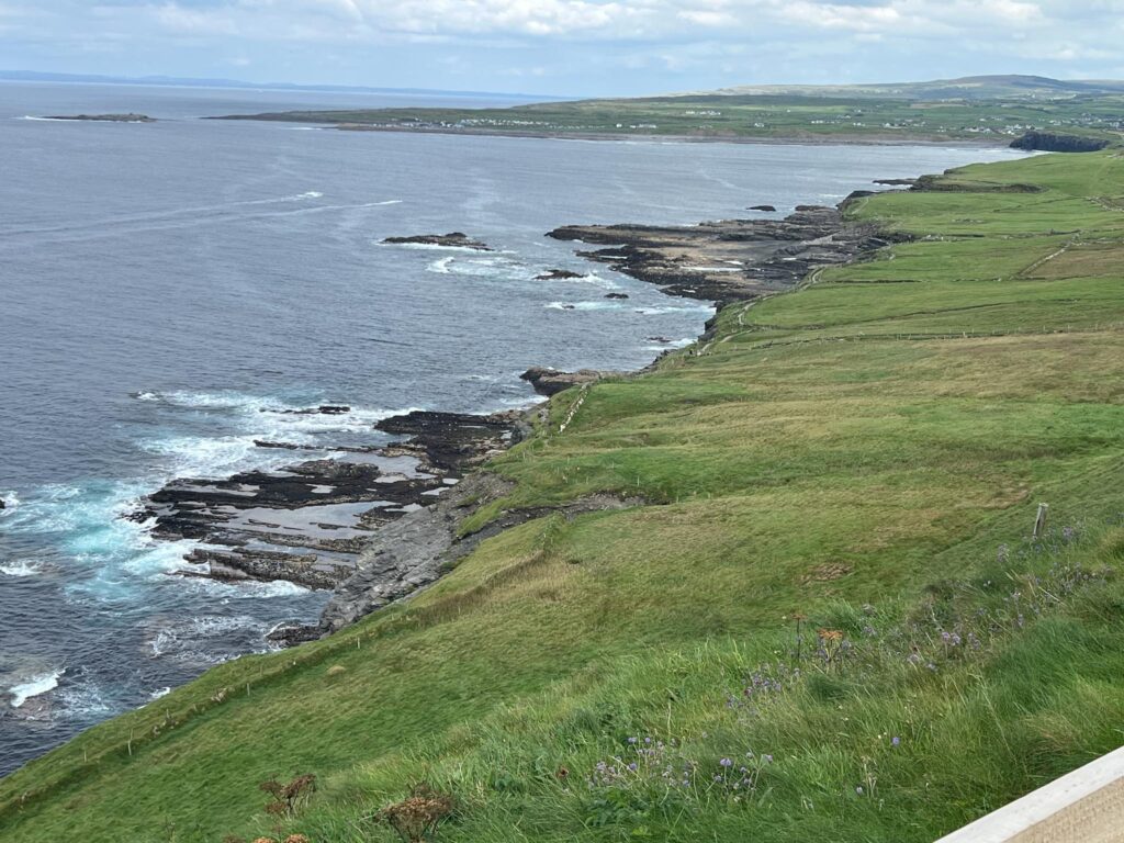 The flat stones of the area between Lahinch and Doolin are not only used for building, but they allow water to drain easily and stay warm enough year round so grass can stay green. After Doolin, the landscape will change.
