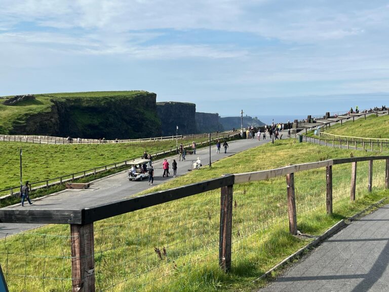 After a complete Irish breakfast at the hotel, we were ready to taxi off to the visitor center for the Cliffs of Moher. Portions of this trail have been closed to walkers, either because of trail erosion, or because too many visitors have taken chances and been hurt or killed.