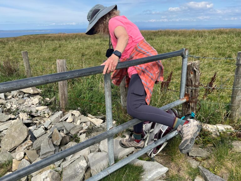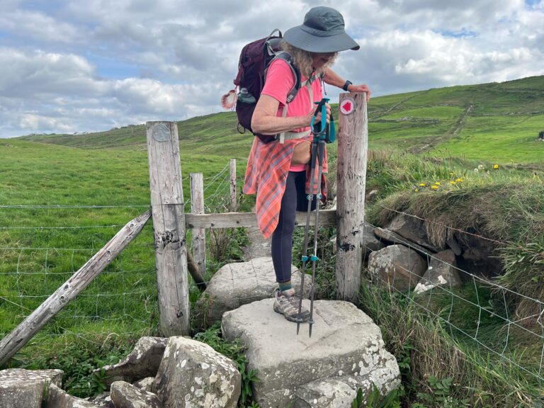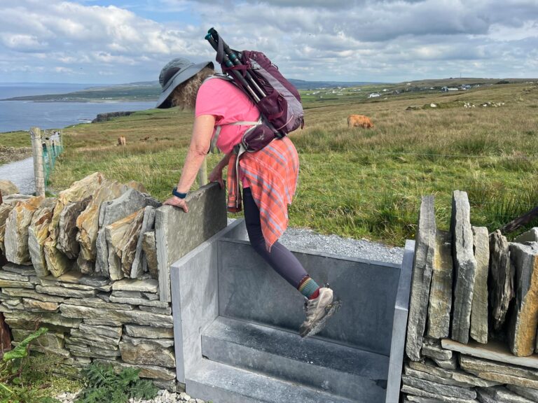 There were many different stiles on today’s walk These modern metal ones sometimes had extra steps and sometimes were a simple vertical grade to manage the animals.