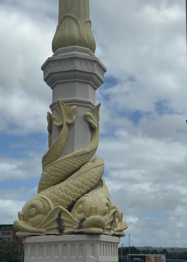 The dependence on the sea is everywhere. Here we see multiple fish on a post of the Queen’s Bridge.