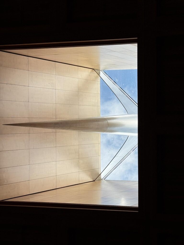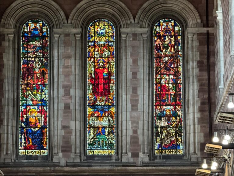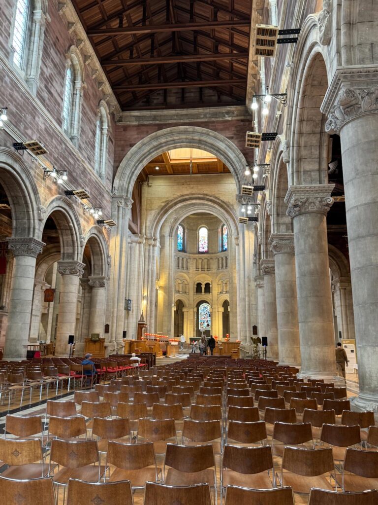 The “Spirit of Hope” extends through the roof and into the choir. It is a 40 meter stainless steel structure illuminated at night.