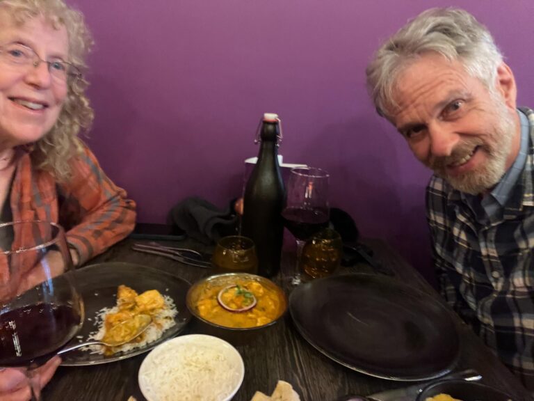 We had dinner at Nu Delhi very near our hotel. We started with an appetizer of mushroom poori, then Richard had Dum Puk Chicken and Jan had Chicken Patia. Yum!