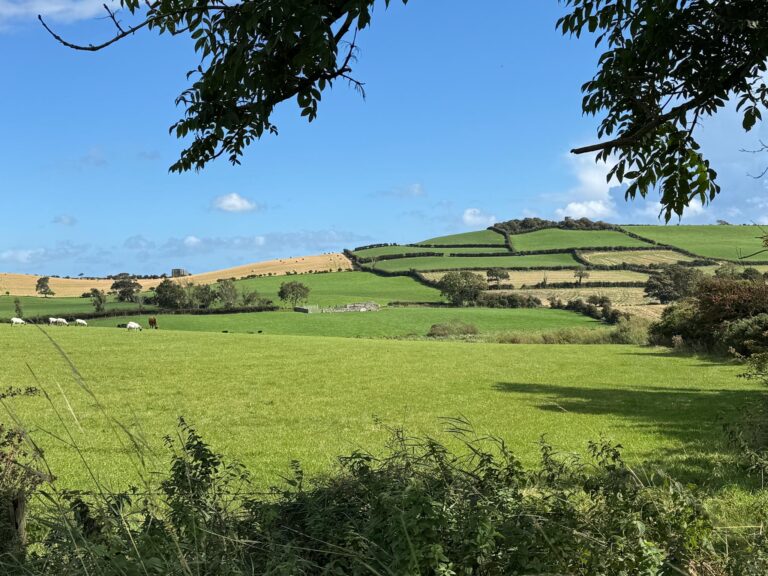 For now, the weather is beautiful as we head toward Downpatrick. This area is dominated by ancient dunes and granite ridges called drumlins, reflecting the fluctuating sea levels history. Thus the town is named for the dunes.