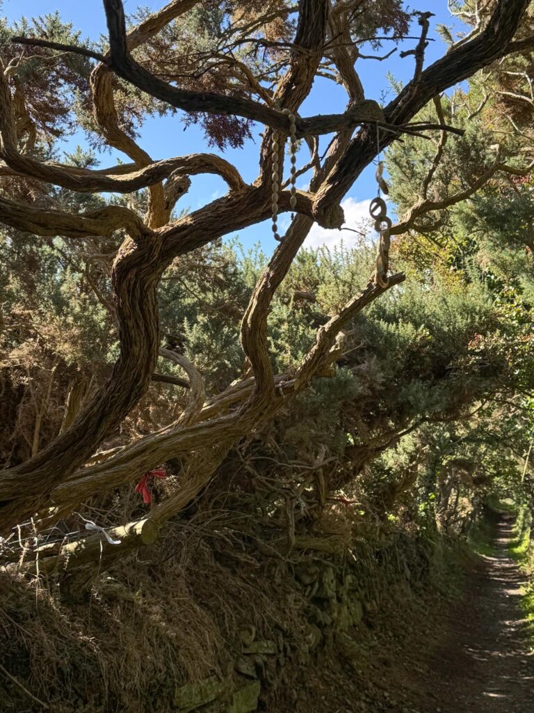 Trees and stones are decorated along the path. Are the fairies busy here?