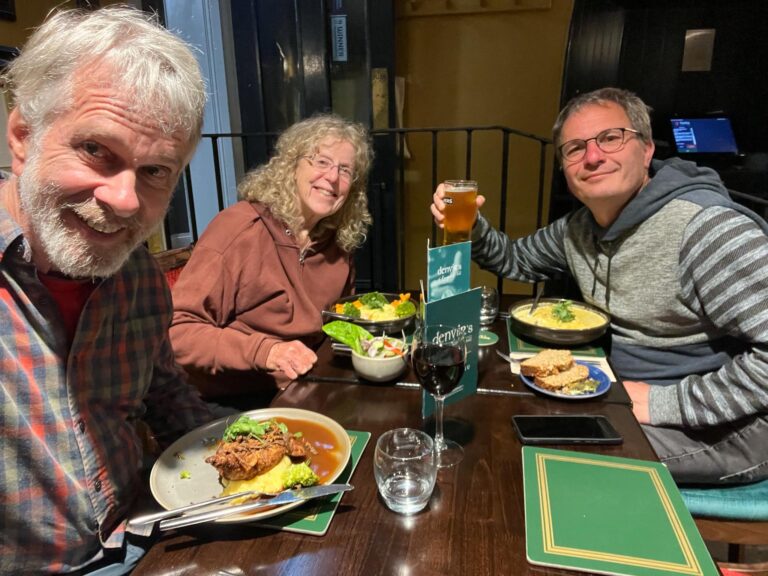 A last celebration with our pilgrim friends. (L-r) Richard, Johannes, Michel, Jan, Patrick, Klaus. Klaus will head to Belfast tomorrow morning, and the other three will travel and be home in the Frankfort area tomorrow night. Until we meet again!