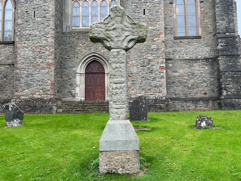 The cross of St. Patrick is now housed in the museum to protect it from the elements. It  is descriptive with Biblical stories, but most are difficult to make out without the museum’s descriptive panels.