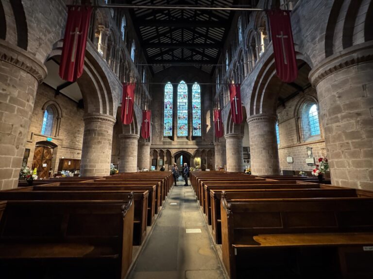 The beautiful Norman columns anchor the church.