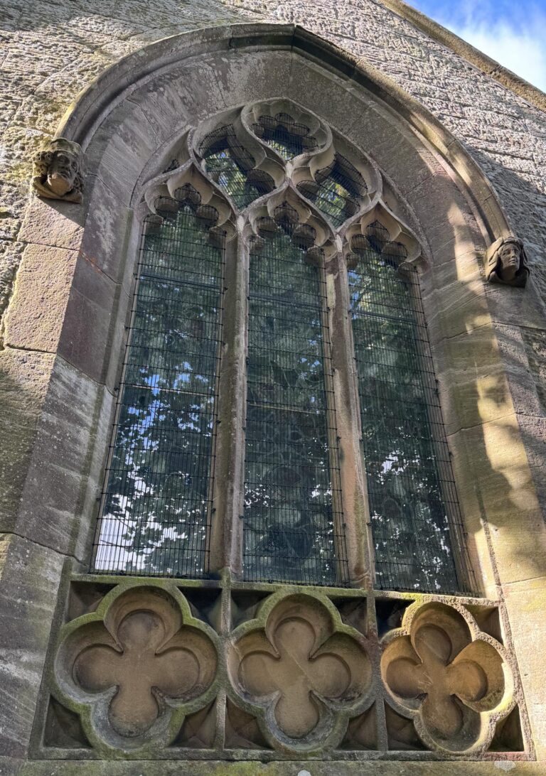 This stained glass window is on the north side of the church. Since this church was important to the Welsh prince, we might wonder if the faces on either side of the window might be representations of the prince and princess.