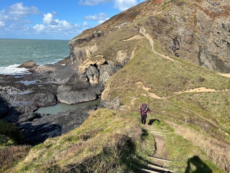 Day 1 hiking the Pembrokeshire Coast Trail. We expected it to be long, but were surprised how hard it was.