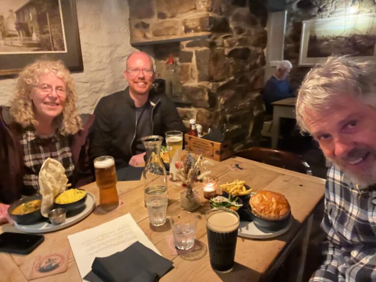 No sooner did we arrive but we needed to head out for dinner. On Sunday night in Newport, there is only one pub open and we had arrived a bit late. Thank goodness it was a good meal: fish, and meat pies.