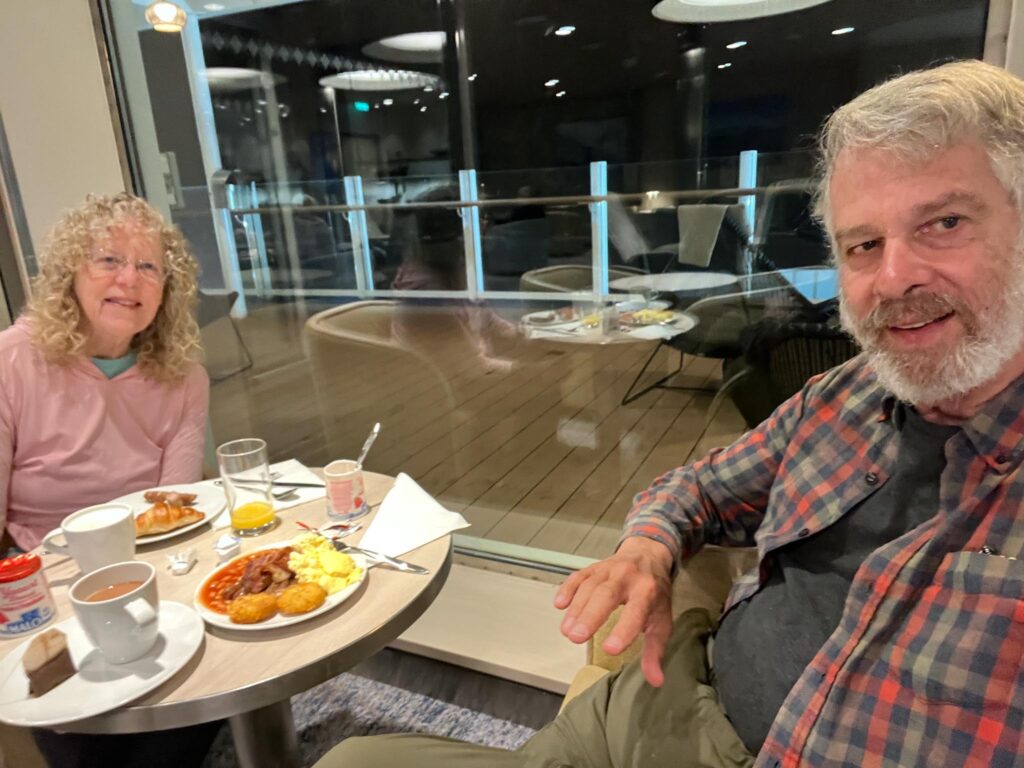 Breakfast was served in the lounge. It was early morning, but the hour allowed us to view our arrival into port at St. Malo, France.