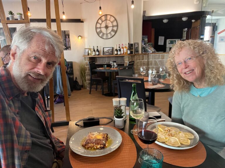 We took time for a wonderful lunch between the train ride and a taxi to our hotel. Lasagna and ravioli!