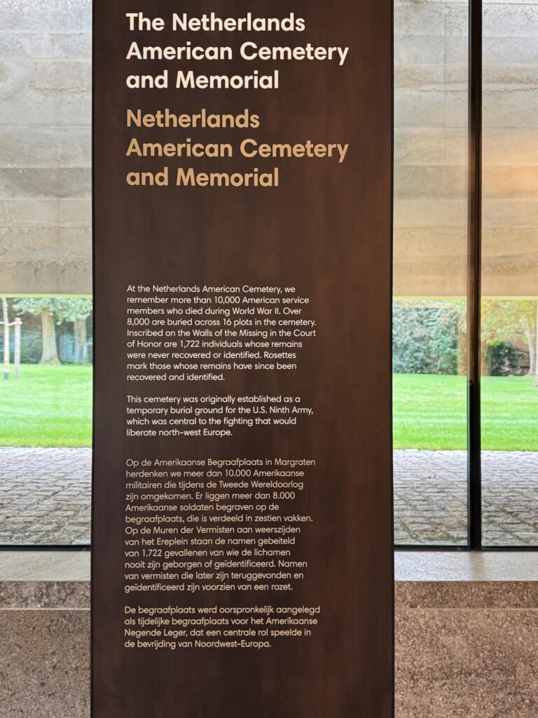 Rina had called ahead to let the cemetery know we were coming today, so Anouk met us and gave us some time to see the exhibits in the new visitor center before we had a brief ceremony.